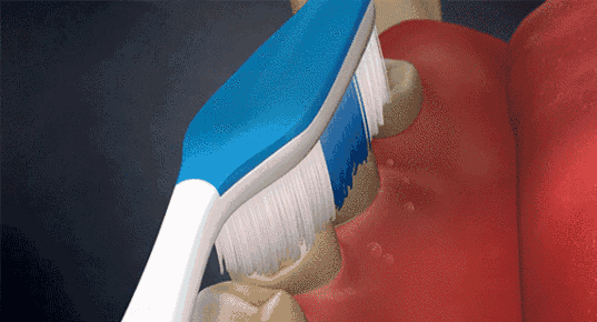 它的精髓就在于牙刷傾斜的角度。刷上排牙齒時,將刷毛朝上與牙齒呈45度角;刷下排牙時,將刷毛朝下45度角;并且面面俱到。